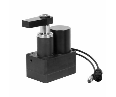 The electric clamp is driven by a wear-resistant brushless DC motor. The motor speed is transformed by means of a gear and a threaded spindle into the swing and stroke movement of the piston rod. For swinging the clamping arm by 180°, an axial stroke of only 3 mm is required.