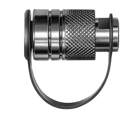 Die gerändelte Schiebehülse des Kupplers wird von Hand zurückgezogen. Die Kugeln werden frei, und beide Kupplungsteile lösen sich voneinander.
