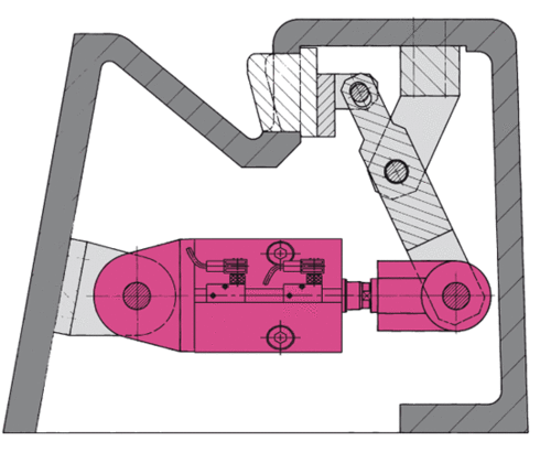 Wenn aus Kräfte- oder Platzgründen ein Blockzylinder nicht direkt eingesetzt werden kann, bietet sich der Hydraulik-Blockzylinder mit Gelenklager an.