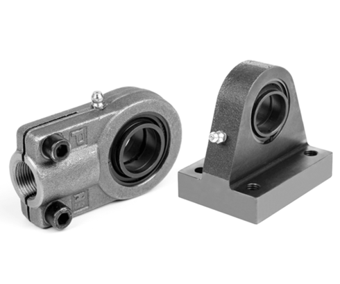 Lagerböcke bestehen aus einem Gelenklager, das in ein Gehäuse eingebaut ist, das an den Zylinderboden von Hydrozylindern oder Blockzylindern geschraubt werden kann.