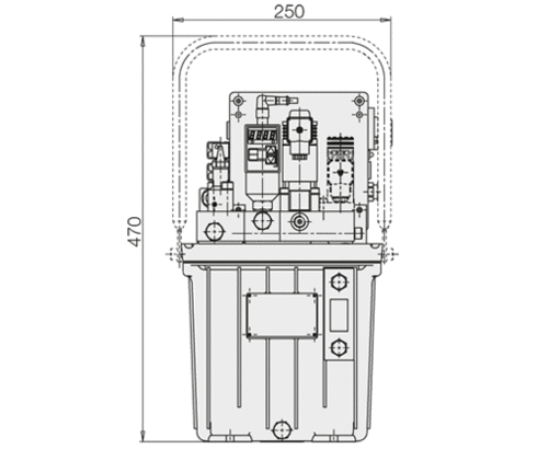 Besonderes Merkmal ist der Einbau von Pumpe und Elektromotor im Ölbehälter. Deshalb können Hydraulik- und Elektrosteuerung platzsparend und gut zugänglich auf dem Behälterdeckel untergebracht werden. Der modulare Aufbau ermöglicht eine Vielzahl von Steuerungsvarianten.