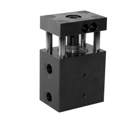 Der RM Minischieber ist ein kompakter Blockzylinder mit 4 integrierten Führungsstangen, die auch Querkräfte und Momente aufnehmen können. An der Frontplatte können Gewinde eingebracht werden, um Nutzlasten oder Werkzeuge zu befestigen. Um eine mögliche Quetschstelle zwischen Frontplatte und Zylinder zu vermeiden, wird der Sicherheitsabstand von 25 mm nach DIN EN 349 eingehalten.