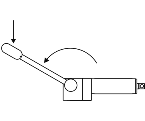 The plunger rod is extended by reversible rotation of approx. 40° by an operating lever at the operating shaft. The recommended lever length is approx. 300 mm.