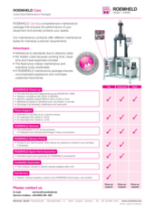 ROEMHELD Care is a comprehensive maintenance package that ensures the performance of your equipment and actively protects your assets. Our maintenance contracts offer different maintenance levels for individual customer requirements.