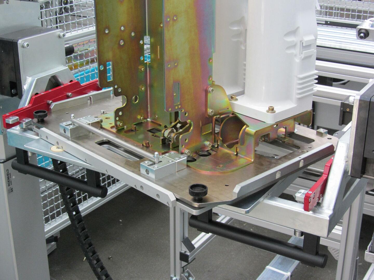 The Energy Management Division of Siemens AG developed a new medium-voltage switch for use in industry as well as in power stations and changeover stations, which was first assembled at a provisional manual workstation. After a successful market launch, the sales figures rose so that the quantity had to be increased and the production at the Berlin location had to be expanded. The Medium Voltage & Systems department therefore asked Bohnert Systemtechnik for support in optimising the assembly workstation.