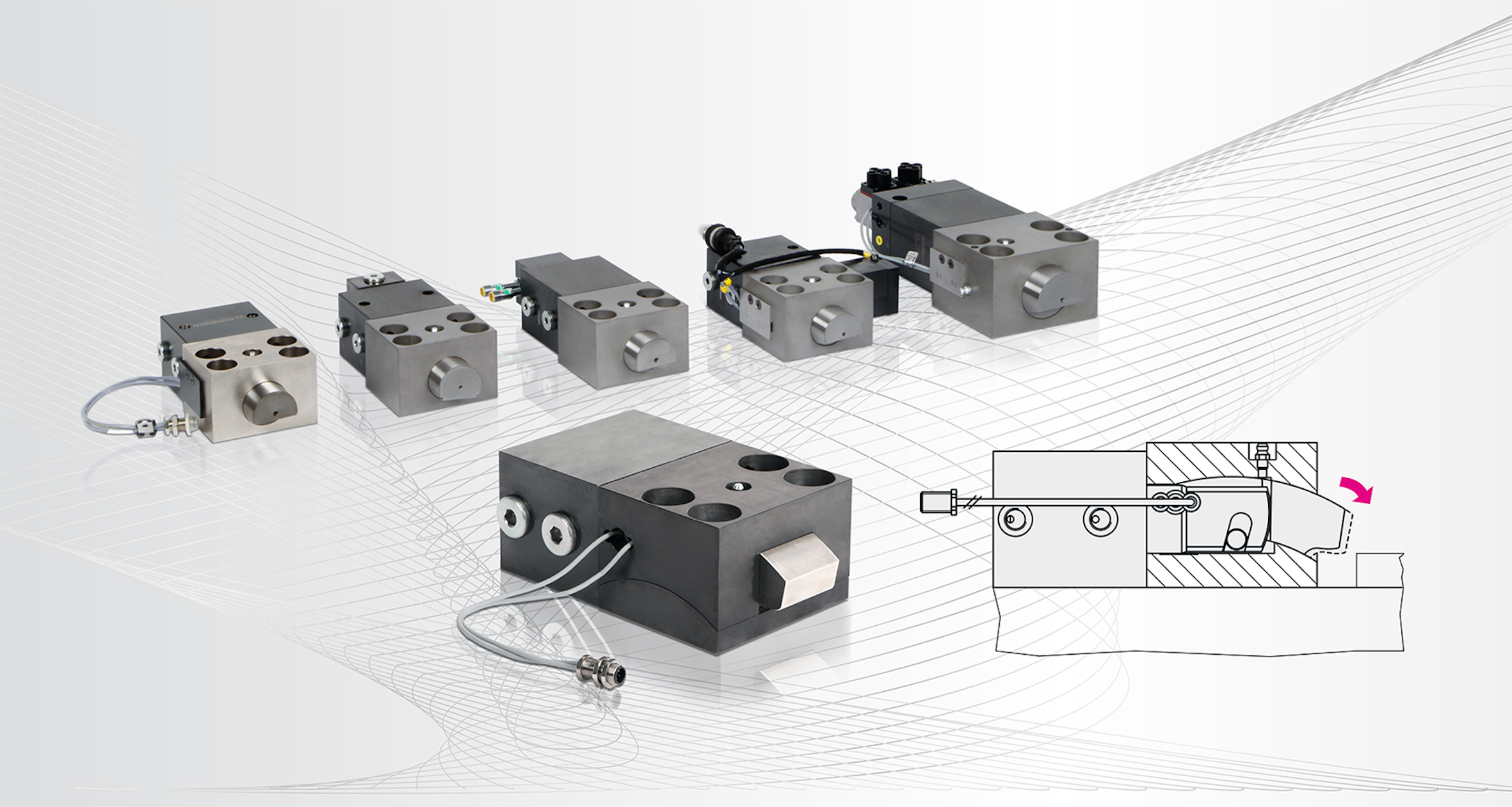 l’azienda leader di mercato nella tecnica di bloccaggio degli stampi amplia la sua gamma di elementi di bloccaggio a cuneo. A doppio effetto e a richiesta con controllo di posizione.